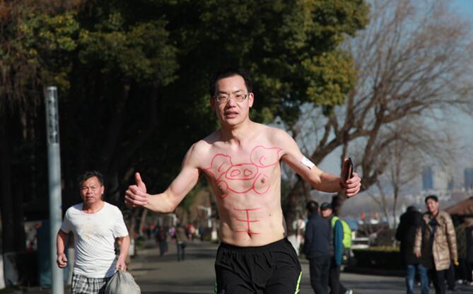 2018年1月13日,江蘇省南京市,清晨八點(diǎn)多,南京氣溫零下3度,近百名健身愛(ài)好者脫去厚重的外套,身著(zhù)泳衣、短褲等環(huán)玄武湖進(jìn)行“光豬跑”,通過(guò)獨特的方式迎接即將到來(lái)的農歷新年,也是向人們倡導親近自然、積極健身的健康生活方式。