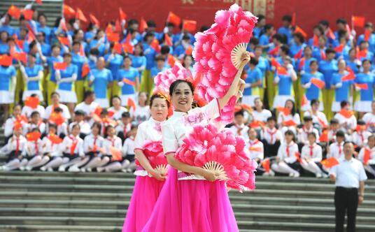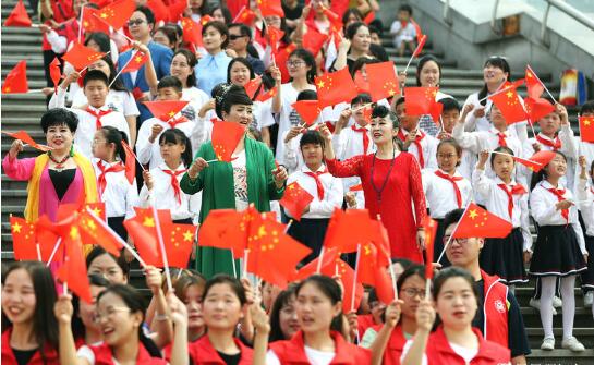 五星紅旗迎風(fēng)飄揚 千人“快閃”歌唱新時(shí)代