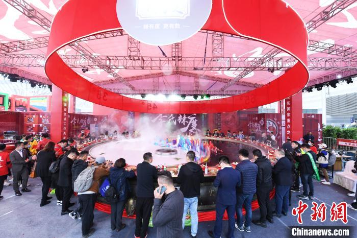 10月16日,巨型火鍋亮相重慶火鍋美食文化節,可同時(shí)容納下50人左右一同開(kāi)燙。當日,第十二屆中國(重慶)火鍋美食文化節暨國際食材博覽會(huì )在重慶悅來(lái)國博中心舉行,吸引了50余家火鍋企業(yè)以及600余家食材商參展。